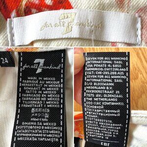 Step into spring with these 7 For All Mankind ankle skinny jeans in a vivid floral print. Cut in a super skinny silhouette with ankle length, they blend soft cotton comfort with stretch for a flattering fit. Perfect for casual outings, brunch, or festival styling, these jeans bring color and charm to any wardrobe.