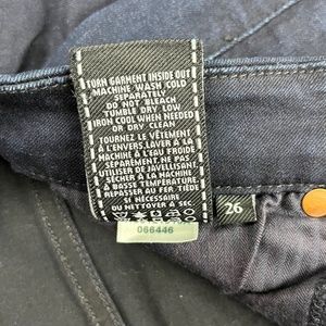 Special Features: Smoke free / pet friendly home. 5 pockets; 5 belt loops. Zipper fly. Style: The ankle skinny.