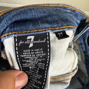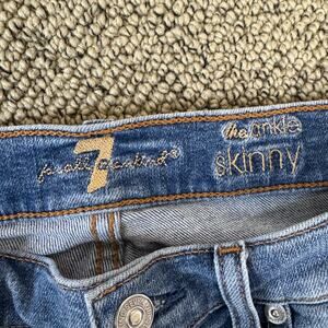 7 For All Mankind Ankle Skinny Panel Stripe Frayed Jeans US Women's 27