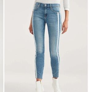 7 For All Mankind Ankle Skinny with Cut Off Hem and Double White Stripes-Size 24