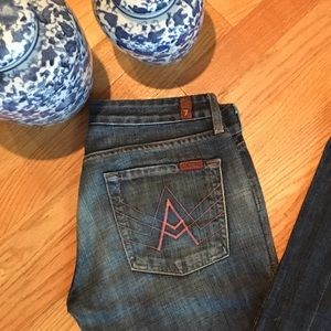 Gently used 7 For All Mankind A-pocket jeans. A is in pink. Size 27 with 33" inseam. In great condition, but some signs of wear on hemline. Reasonable offers welcome!