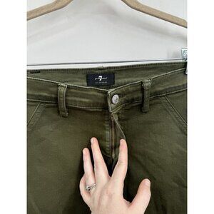 7 For All Mankind Armycoated Cargo Pant Women 29 Green Zip Ankle Grunge Skinny