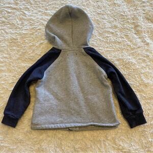 Features: Grey and blue full zip up hoodie with side pockets