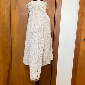 Excellent condition. No visible signs of wear. Cozy beige cable knit sweater with stylish cowl neck. Ideal for cool weather.