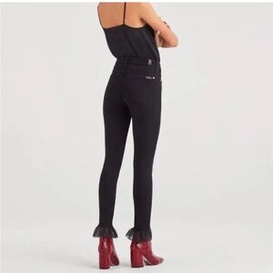 Like new jet black 7 for all Mankind skinny ankle jeans with sexy ruffle ankle. Very stretchy for a flattering fit. Worn once.