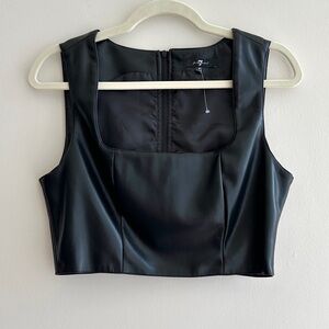 7 For All Mankind Black Faux Leather Corset Crop Top, Size Medium