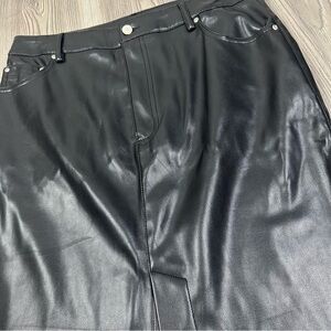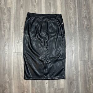 7 For All Mankind Black Faux Leather Midi Skirt Front Slit High Waist