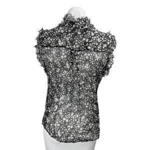 7 For All Mankind Black Floral Ruffle Sleeveless Button Sheer Cami Blouse Top XS