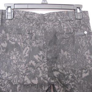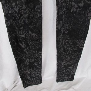 Stylish skinny jeans with a unique black pattern. Perfect for a chic look.