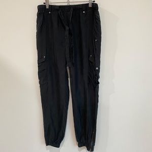 7 For All Mankind Black Silk Cropped Cargo Jogger Pant