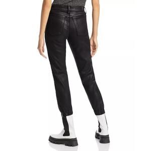 7 For All Mankind Black Wax Coated Boyfriend Jogger Pants Sz 27