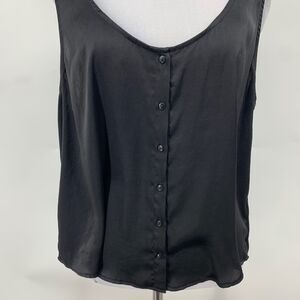 7 FOR ALL MANKIND BLOUSE WOMENS M MEDIUM BLACK SATIN BUTTON FRONT SLEEVELESS