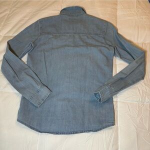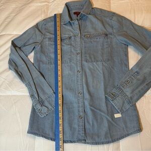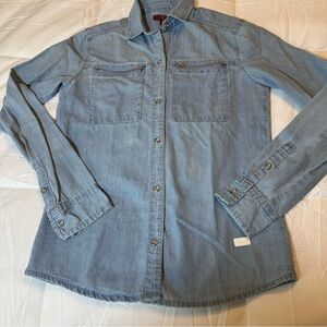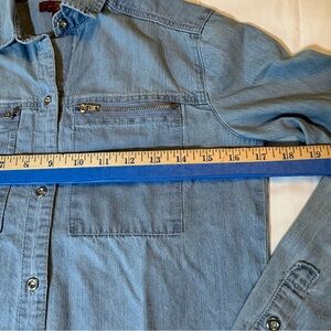 7 For All Mankind Blue Denim Chambray Zip Pockets 100% Cotton Shirt Blouse(b4