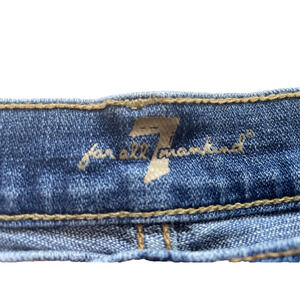 7 For All Mankind Blue Denim Distressed Cuffed Shorts Embroidered Pockets Logo