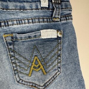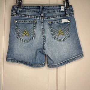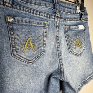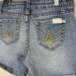 7 for all Man Kind, classic blue denim shorts. Features five-pocket style. Perfect for casual wear.
