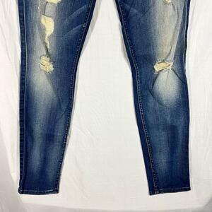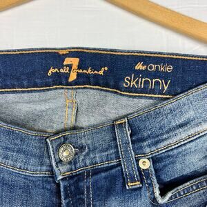 7 For All Mankind Blue Distressed Straight Leg Jeans
