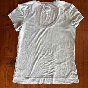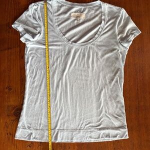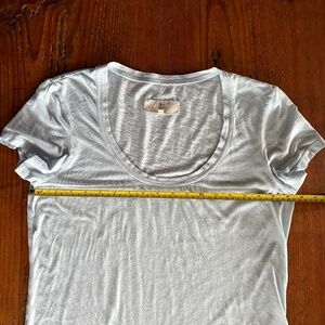 Good preowned condition with some normal light wash wear. 7 For All Mankind light blue scoop neck t-shirt. Size medium. Measurements are approximate