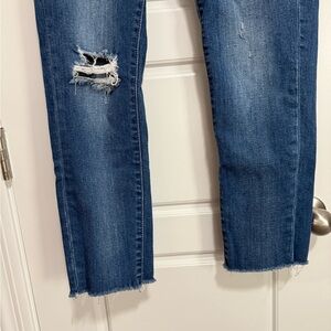 7 for all Mankind size 27 Roxanne ankle jeans. Elevate your style with these classic blue distressed jeans. Perfect for a casual day out, these jeans offer comfort and a trendy look. Final sale/ no returns.