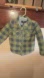 Casual plaid jacket with button-up front. Features dual chest pockets.