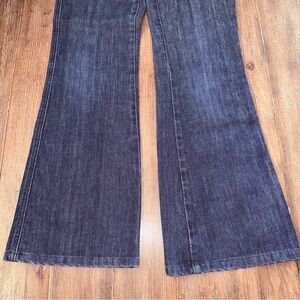 7 For All Mankind Bootcut Jeans Long Low Rise Western Cowgirl Dark Blue Wash