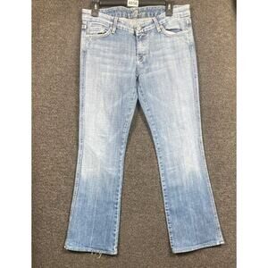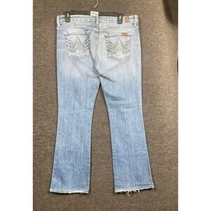7 For All Mankind Bootcut Jeans Womens Sz 30 Blue "A" Pocket Rhinestone Mid Rise