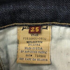 Size 25 Tag, Actual: waist 28", front rise 7", inseam 28", leg opening 14"