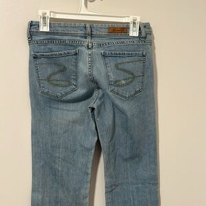 7 For All Mankind Bootcut Light Wash Jeans Size 29. One pocket has different patterning as pictured. Inseam is about 28.