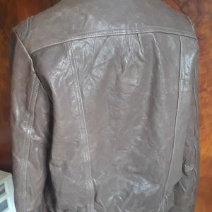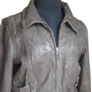 Seven For All Man Kind Authentic Women's Distressed Brown 100% Leather Full Zip Collared Bomber Jacket SZ M( Marked L but fits like a M) in excellent pre-owned condition. Fly-In-Style Bomber, with its worn-in look, is eye-catching. Has 2 side pockets. Silver-toned hardware. I'm not a Picker, please don't waste either of our time with lowball offers.
