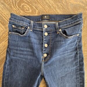 7 For All Mankind Button Fly Skinny Jeans Women’s Blue Denim Size 28 (Approx.)