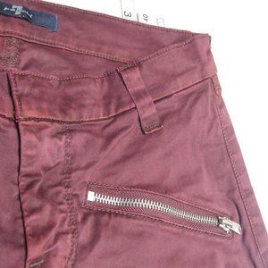 7 For All Mankind Capri Red Moto Pants Women's 24 Second Skin Bordeaux D052