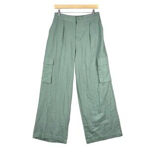 7 For All Mankind Cargo Pants Green Linen Blend Wide Leg High Rise Women’s M NWT