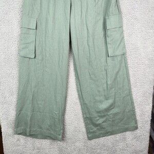 7 For All Mankind Cargo Pants Green Linen Blend Wide Leg High Rise Women’s M NWT