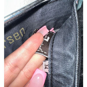 These jeans are pre-worn and are in good condition but on the back of the jeans, there is some wear and tear, but can be hemmed off