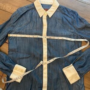 7 For All Mankind Chambray Denim Button Down Shirt White Accents