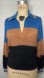 This stylish polo sweater from 7 For All Mankind features a striking blue and brown color-block design. The varsity striped trim adds a touch of retro athletic flair, making it a versatile addition to any wardrobe. Inside fabric tag cut out but I’ve machine washed in cold water.