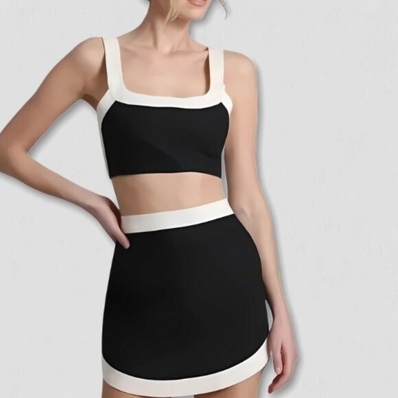 Black and white color block with square neckline