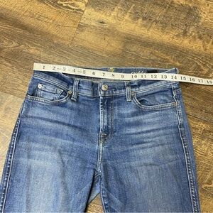 7 For All Mankind Cropped Boot Jeans Women's 28 Blue Denim Raw Hem