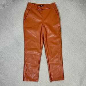 7 For All Mankind Crossover Waist Faux Leather Crop Pants Chestnut Brown Medium