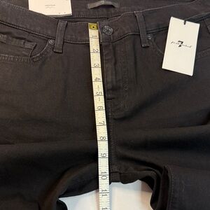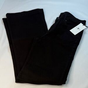 Elegant dark jeans with boot cut style. Versatile and chic.