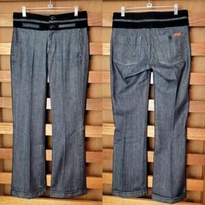7 For All Mankind Dark Wash and Black Velvet Band Straight Leg Jeans, Sz 27