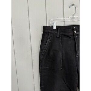 7 For All Mankind Darted Boyfriend Coated Jogger Pants 32 High Waisted Black