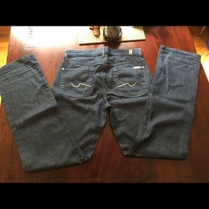These are brand new without tags 7 For All Mankind Standard Denim Jeans. Size 30. I purchased them from Bloomingdales and loved them when I tried them on, but didn't love them once I put them on at home. They're authentic and super comfortable. Just not my type of Jean I see myself wearing.