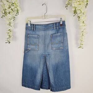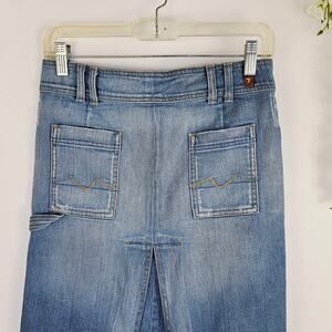 7 For All Mankind Denim Jean Skirt Knee Length 90s Y2k Pleated Utility Size 25
