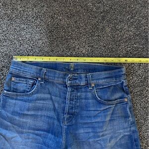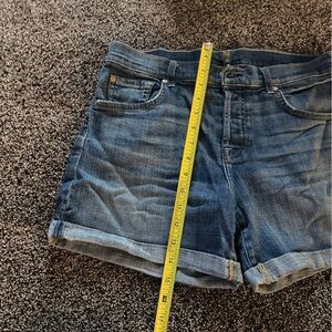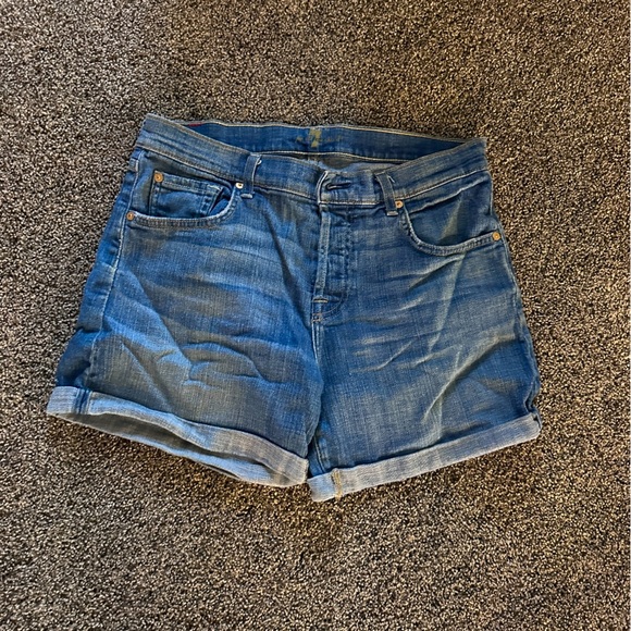 7 For All Mankind Denim Shorts Cuffed Mid Rise Blue Distressed Size 28 Summertime Beach Casual Jean