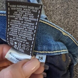 7 For All Mankind Denim Shorts Cuffed Mid Rise Blue Distressed Size 28 Summer