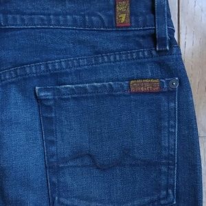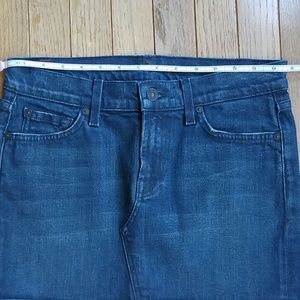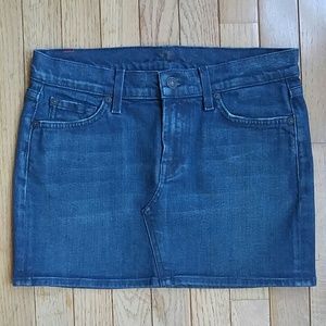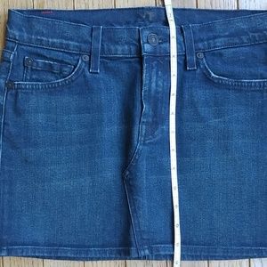 "Roxanne" style dark denim mini skirt from 7 For All Mankind. Size 27. New without tags in perfect condition. Approximately 15 inches at waist and 14 inches from top to bottom.