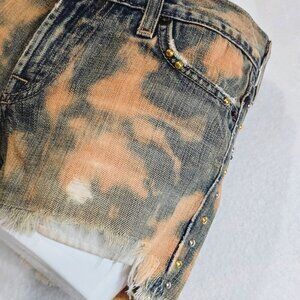 7 For All Mankind Designer Denim Cutoff Shorts – Blue Raw Hem Mid Rise Sz 25