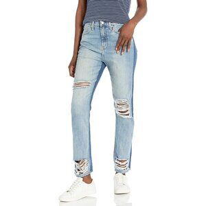 7 For All Mankind Distressed Two Tone Straight Jeans Seaward Blue Womens 25
