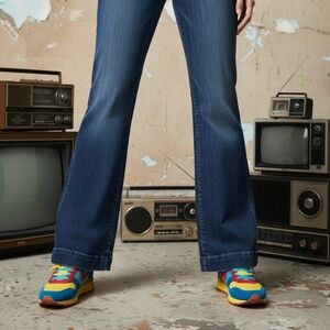 Elevate your denim game with these 7 For All Mankind Dojo jeans — a timeless wide-leg flare in a classic dark wash. Made in the USA with premium stretch denim for comfort and a flattering fit. Features signature embroidered “7” back pockets, mid-rise waist, and clean, versatile styling.