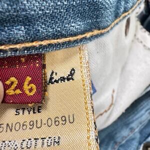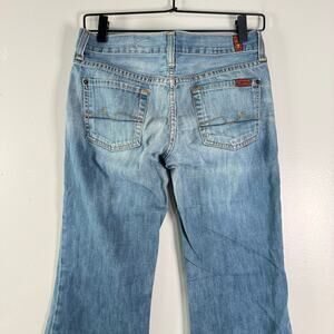 7 For All Mankind Dojo Flared Jeans Medium Wash Blue Low Rise Cotton Retro Sz 26